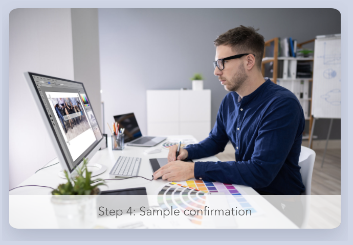 After reviewing the printed sample. send a comment or confirm the sample. we proceed with production based on printed samples.